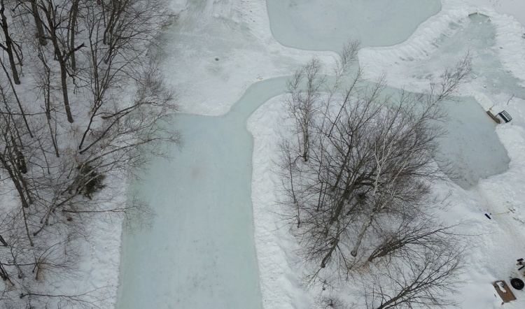 Patinoire fermée » est en place, c'est sérieux, attendre le retrait de celle-ci pour pelleter, patiner ou marcher sur la glace.